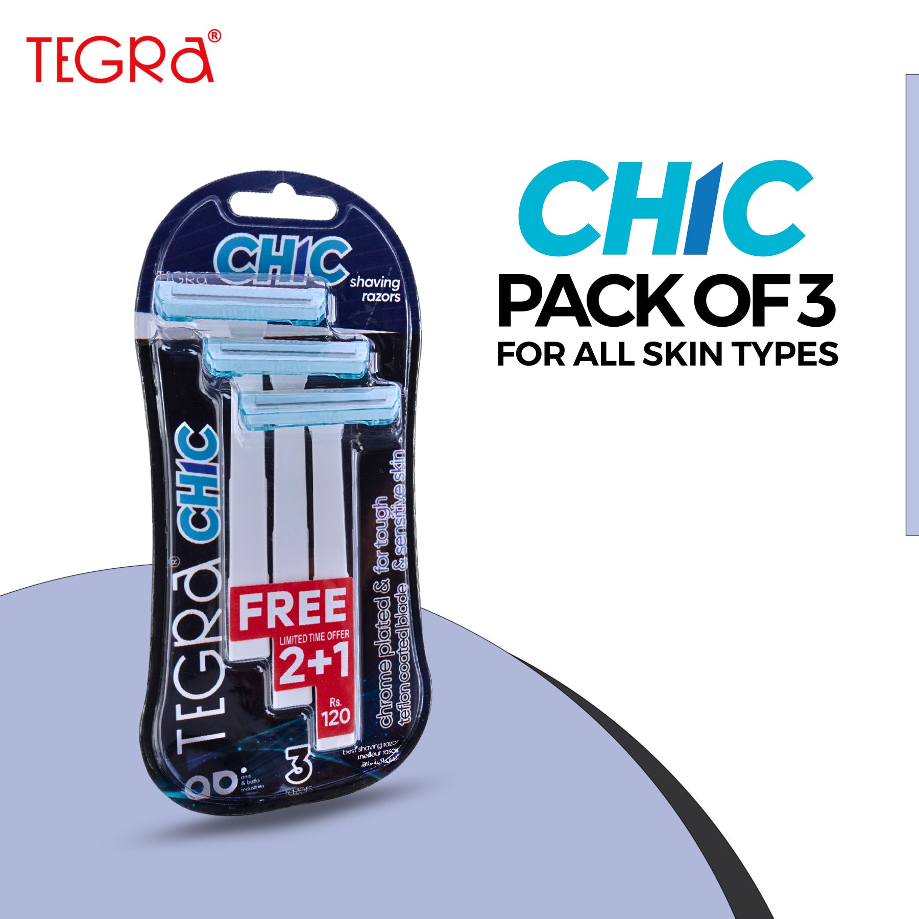 Designed for smooth and comfortable shaving, Tegra Chic Shaving Razors are suitable for all skin types. Featuring chrome-plated blades, these razors provide an easy glide for a clean and gentle shave. The slim handle design ensures better control and precision, making everyday shaving simple and effective.