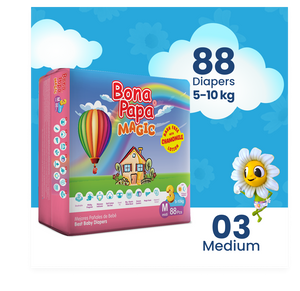 Bona Papa Magic Diapers - M-3 (Midi) 5-10kg Economy Pack 44 Pcs