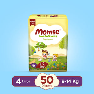 Momse Diapers - L-4 (Maxi) 9-14kg Economy Pack 32 Pcs