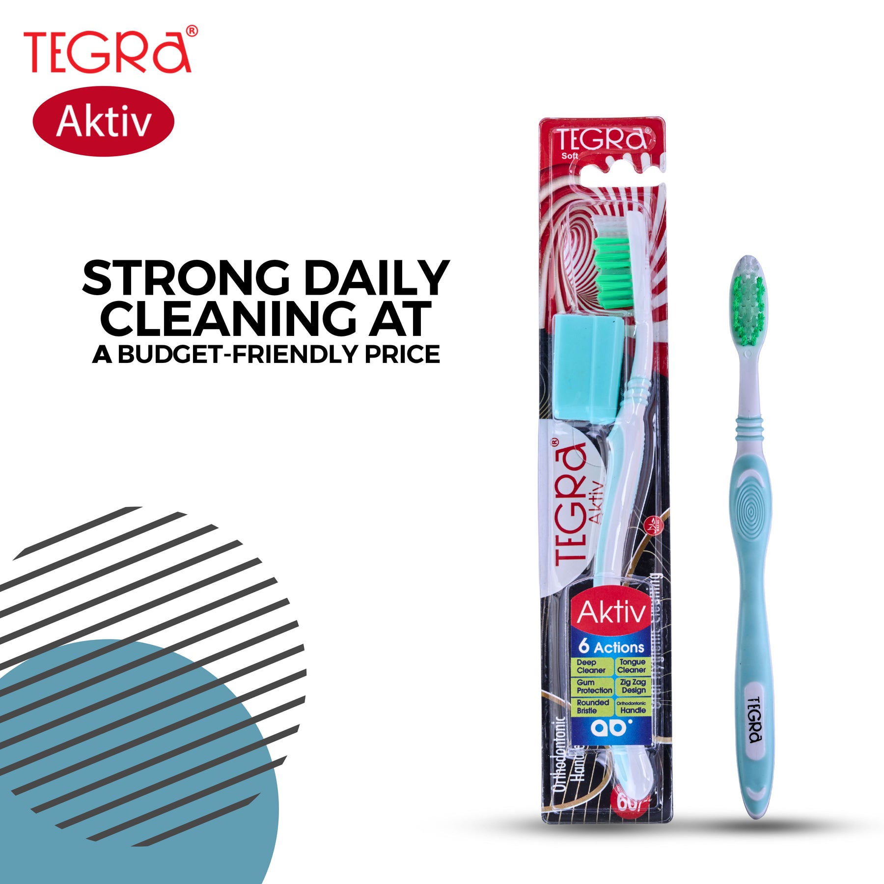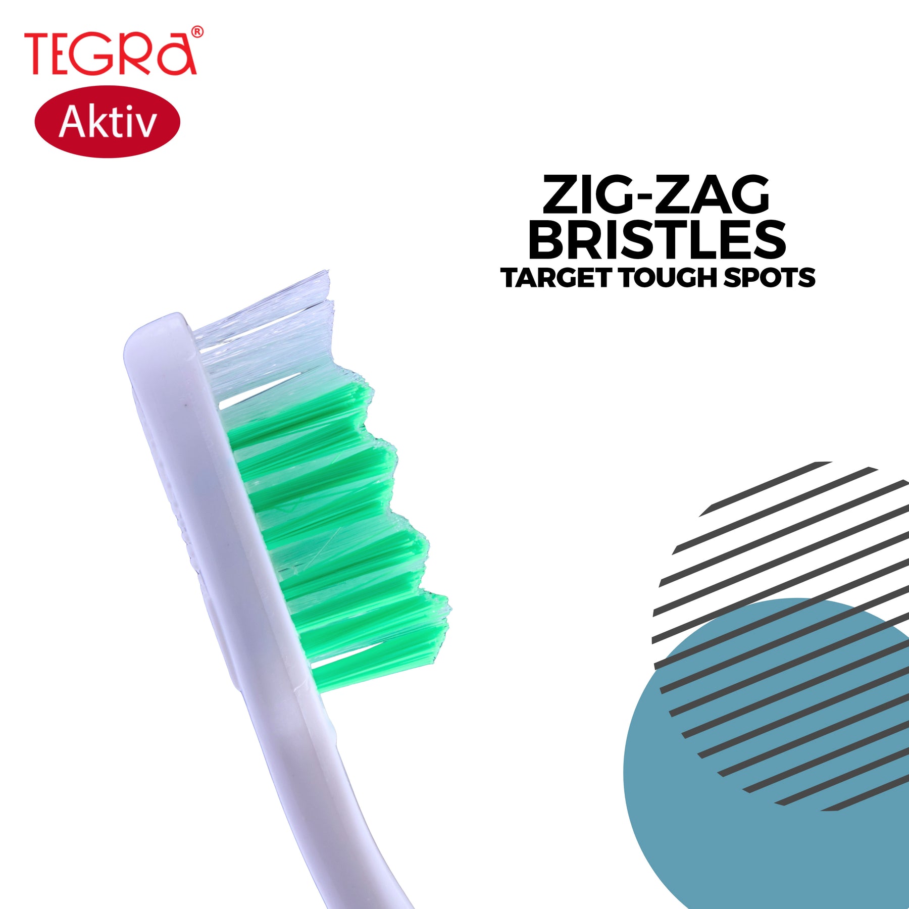 Engineered for deep and effective cleaning, the Tegra Active Toothbrush comes with zig-zag soft bristles and a curved handle for better reach and comfort. Its active grip ensures firm handling, making it an ideal choice for everyday use with reliable performance.