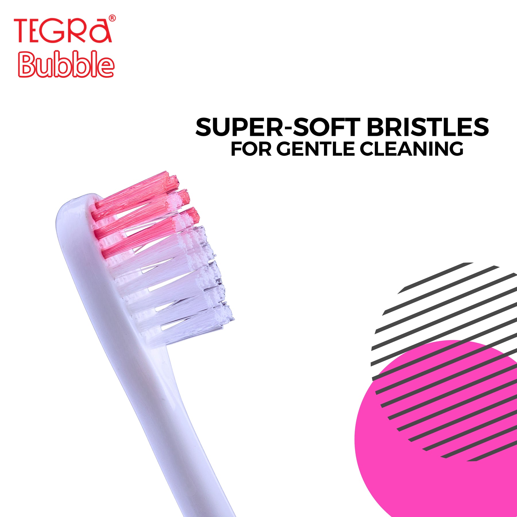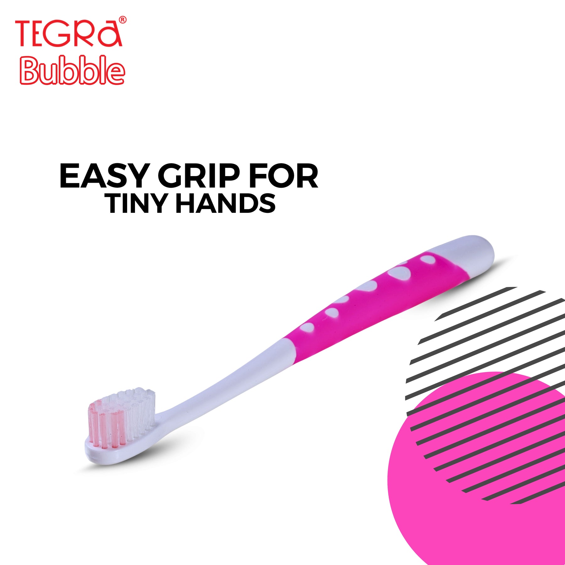 Made especially for kids, the Tegra Bubble Toothbrush features a fun, colorful handle and soft bristles for gentle cleaning. Its round bristle design supports effective plaque removal while motivating children to develop healthy brushing habits.